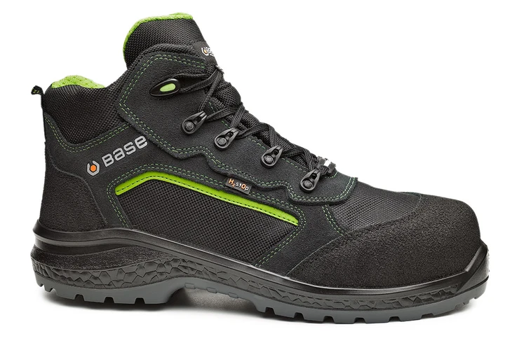 Особенности обуви Base включают антистатическую защиту, водонепроницаемую верхнюю часть, устойчивый подносок с амортизацией в области пятки и устойчивую к проколам подошву. Эта обувь также обладает высокой термостойкостью, отличной изоляцией от холода и устойчивостью к углеводородам. Мужская ширина и ортопедическая стелька на заказ соответствуют европейским нормам DGUV112-191.